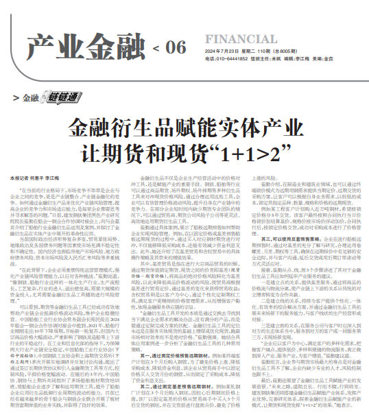 中國冶金報 | 金融衍生品賦能實體產(chǎn)業(yè)讓期貨和現(xiàn)貨“1+1>2