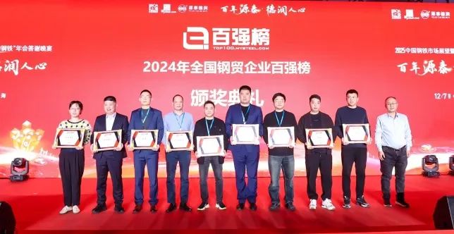 在本屆大會的2025中國大宗商品頒獎慶典上,廈門建發(fā)鋼鐵集團有限公司榮獲2024年全國鋼貿(mào)企業(yè)百強榜“綜合榜第一位”,建發(fā)鋼鐵集團旗下廈門建發(fā)金屬有限公司、上海建發(fā)物資有限公司分別獲得“金屬板材榜第一位”、“金屬板材榜十強”,凸顯了建發(fā)鋼鐵集團供應鏈運營綜合實力及行業(yè)地位。