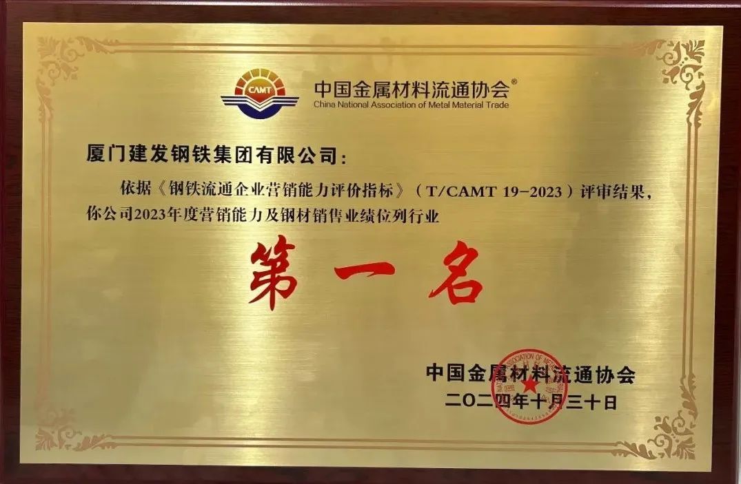 建發(fā)鋼鐵集團|年度營銷能力及鋼材銷售業(yè)績行業(yè)第一名