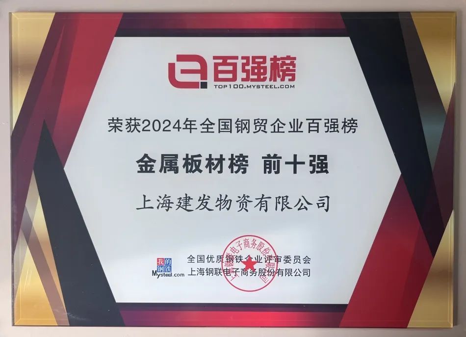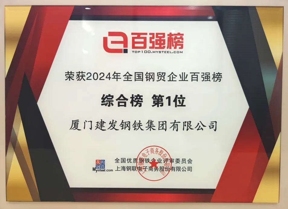 蟬聯(lián)第一 | 建發(fā)鋼鐵集團榮獲 2024年全國鋼貿(mào)企業(yè)百強榜綜合榜第一位